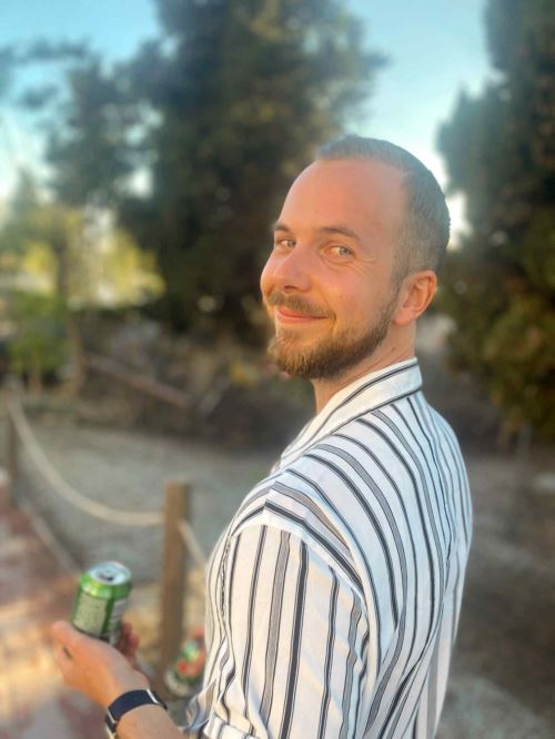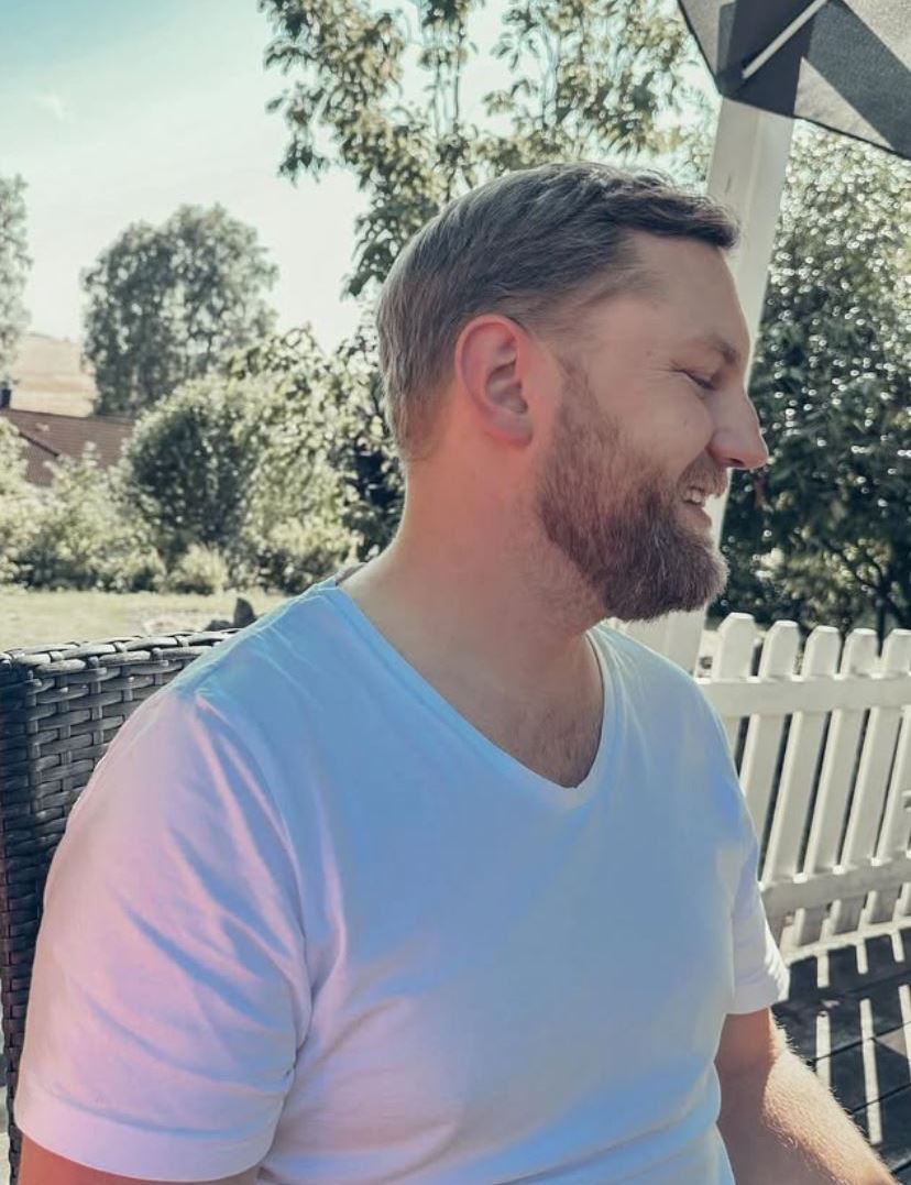På bilden ser ni brudgummens äldsta vän och vapendragare sedan 1999. En oerhört rolig och omtänksam kille, som tyvärr aldrig lyckades ta sig ut på golftouren på grund av sina hjärnspöken. Men häng inte läpp över det, han är så bra på mycket annat. Det finns ingen som kan lägga skämt som honom, han lyckas 10 av 10 gånger. Dessutom är han en jäkel på danssteg men kan vara lite svårstartad och blyg. Men det finns sätt att få dansgurun att lätta på tyglarna och börja gunga med höfterna. Gå gärna fram till honom under kvällen och ge han en liten hutt. Då kan jag garantera er att ni kommer få se något utöver det vanliga på dansgolvet.